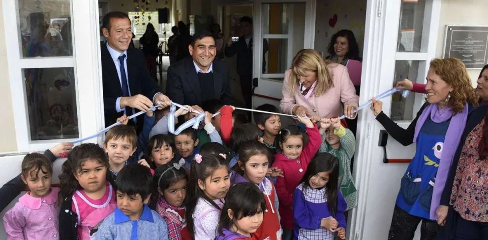 El gobernador Omar Gutiérrez inauguró hoy el nuevo edificio del jardín de infantes Nº 54 de Las Ovejas, que demandó una inversión superior a los 8 millones de pesos, y anunció la decisión del gobierno provincial de abrir espacios educativos de nivel terciario y universitario en las localidades del Norte neuquino para afianzar el arraigo.