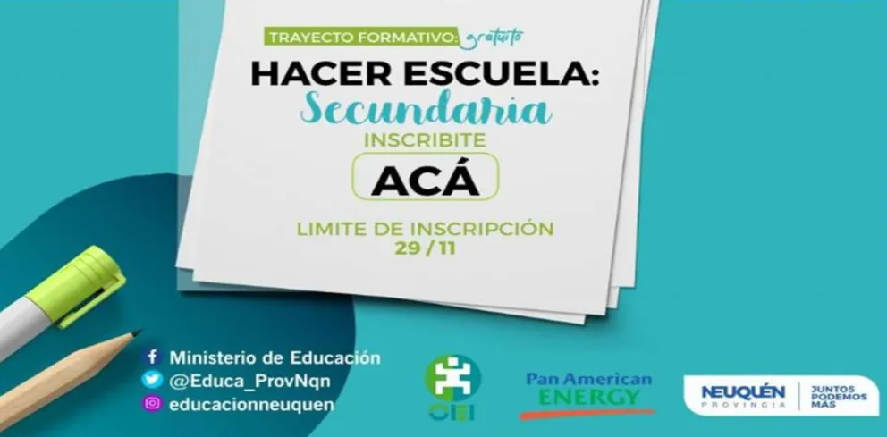 Para completar el formulario de “Hacer Escuela Secundaria” https://www.neuquen.edu.ar/inscripcion-hacer-escuela-secundaria/ y otras consultas [email protected].
