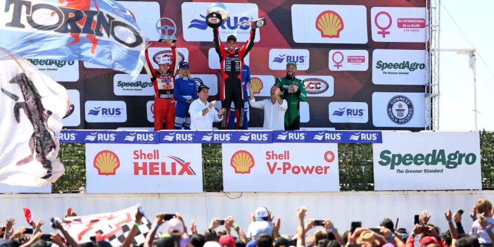 El piloto de Villa La Angostura consiguió un histórico triunfo que fue muy festejado por el público local. El gobernador Omar Gutiérrez le entregó el premio en el podio.