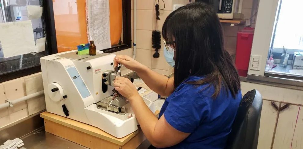 El servicio de Anatomía Patológica del Hospital Provincial Neuquén, único en Salud Pública de la provincia, es el encargado, entre otros trabajos, de procesar diferentes muestras: biopsias; piezas quirúrgicas; de citología no ginecológica como son las punciones de tiroides; mamas; citología ginecológica que son los PAP; y también test de VPH que es el que se realiza previo al PAP para el control de cáncer de cuello uterino.