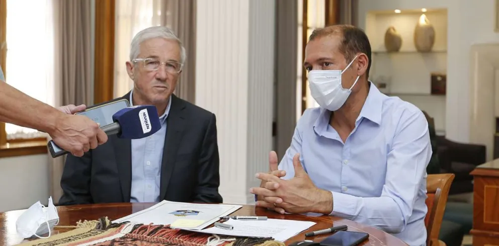 El gobernador Omar Gutiérrez firmó, durante el mediodía de hoy, en su despacho de Casa de Gobierno, junto al intendente de San Patricio del Chañar, Leandro Bertoya, dos convenios para distintas obras para la localidad de San Patricio del Chañar. Participó además, la presidente del Honorable Concejo Deliberante de San Patricio del Chañar, Silvana Cerda.