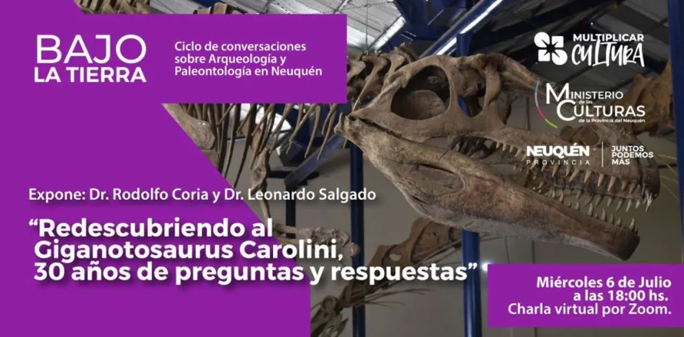 En esta oportunidad la temática presentada será “Revisitando al Giganotosaurus, preguntas y respuestas 30 años después”, un recorrido con el impacto para el conocimiento de los dinosaurios carnívoros de la región a partir de esta especie icónica para Argentina y especialmente para Neuquén, junto a los investigadores que lo dieron a conocer a la ciencia, el Dr. Rodolfo Coria y el Dr. Leonardo Salgado.