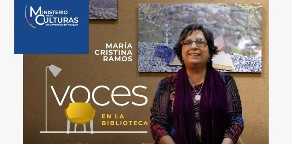 El lunes 18 de julio a las 18 se estrenará una nueva emisión del Ciclo Voces en la Biblioteca en el canal de Youtube del Ministerio de las Culturas. En esta oportunidad, deja su testimonio la escritora María Cristina Ramos.