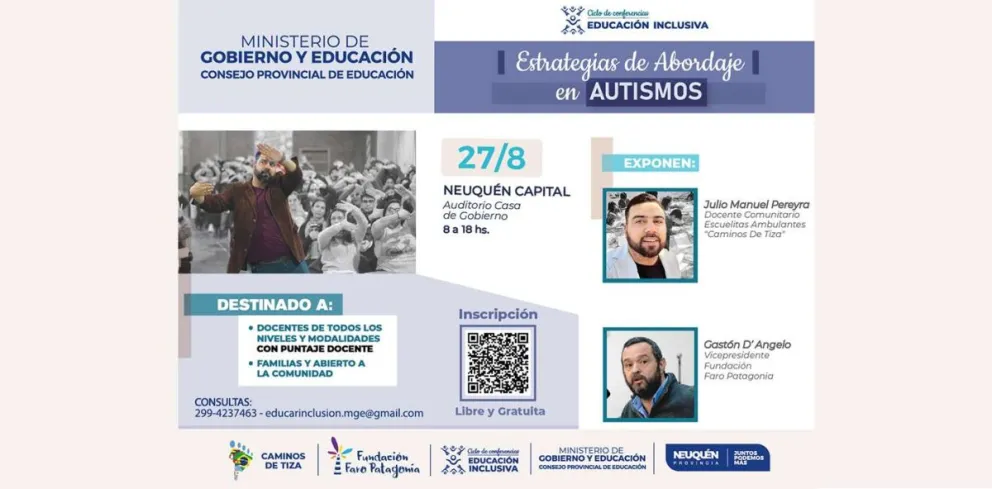 El ministerio de Gobierno y Educación informó que el 27 de agosto comenzará un nuevo ciclo de conferencias sobre Educación Inclusiva, en este caso Autismo y Dislexia. Las son de participación libre y gratuita y ya se encuentra habilitado el formulario para reservar el cupo, que es limitado.
