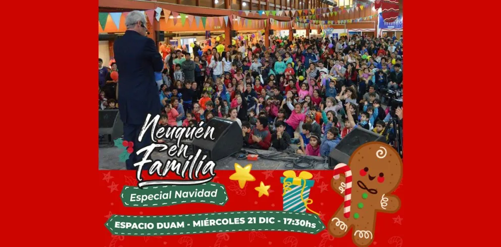 Las puertas del Espacio Duam se abrirán el miércoles 21 de diciembre a las 17.30 para disfrutar de una nueva edición de “Neuquén en familia – Especial Navidad”. El Centro de Eventos y Convenciones vuelve a ser sede de un evento de entrada libre y gratuita que convoca a las familias neuquinas a una jornada repleta de espectáculos y actividades para los más chicos.