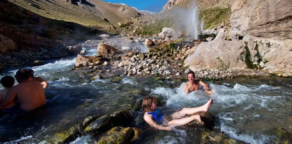 El lugar se encuentra a pocos kilómetros de la localidad de Varvarco, desde donde se inicia el camino hacia el Domuyo, conocido como el Techo de la Patagonia gracias a sus 4.709 m.s.n.m. Desde sus profundas y escarpadas gargantas nacen arroyos de aguas calientes, fumarolas y olletas con propiedades termales únicas, que le dan el conocido nombre al sitio.