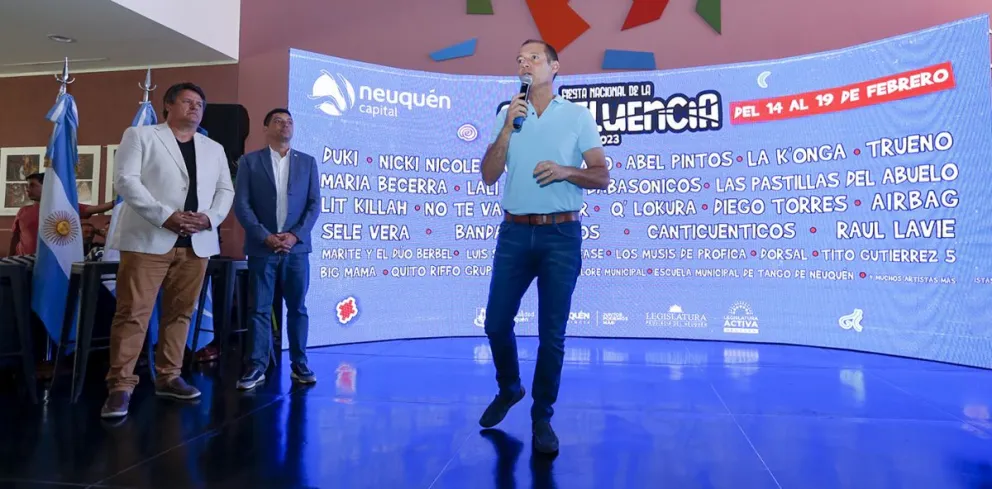 Esta mañana, el gobernador Omar Gutiérrez, el intendente de Neuquén capital Mariano Gaido y el vicegobernador Marcos Koopmann presentaron la grilla de artistas que participarán de la Fiesta Nacional de la Confluencia 2023. La nueva edición se llevará a cabo en la Isla 132 del 14 al 19 de febrero.