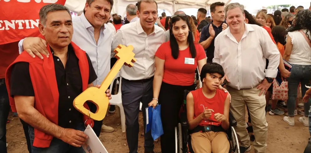 El mandatario agradeció “a todo el equipo del Instituto Provincial de Vivienda, a Marcelo (Sampablo) que me tuvo que soportar y padecer, y a su equipo”. Indicó que el viernes próximo se entregarán “siete viviendas en El Cholar y ayer entregamos cinco en Ramón Castro”, por lo que remarcó el agradecimiento “a las empresas constructoras, a cada trabajador, cada trabajadora, al sindicato”.