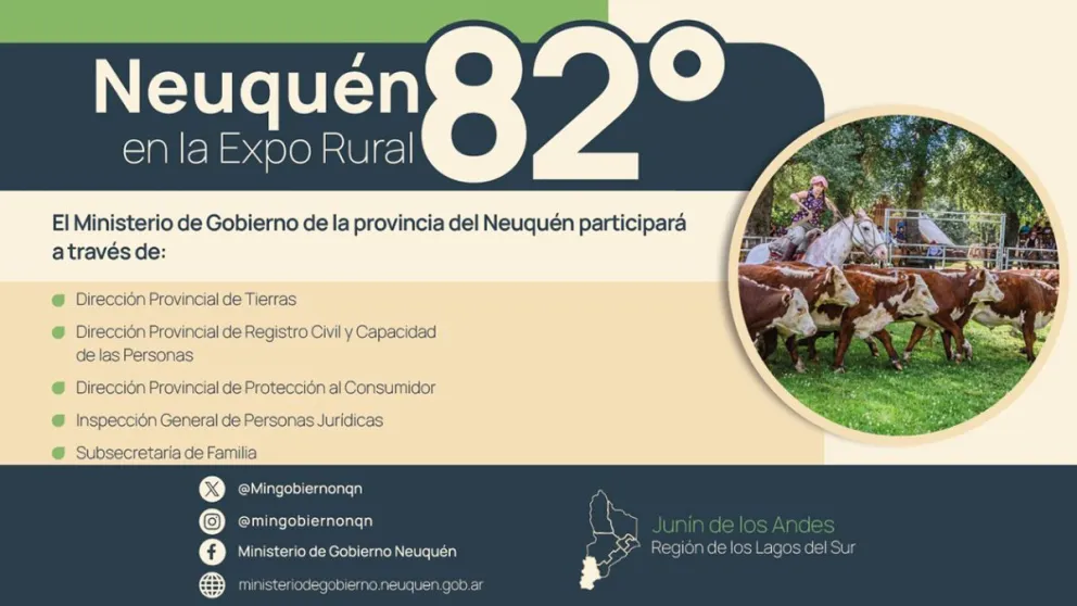 Distintas áreas comprendidas en la órbita del ministerio de Gobierno, a cargo del ministro Jorge Tobares, están presentes en la 82° edición de la Expo Rural de Junín de los Andes.