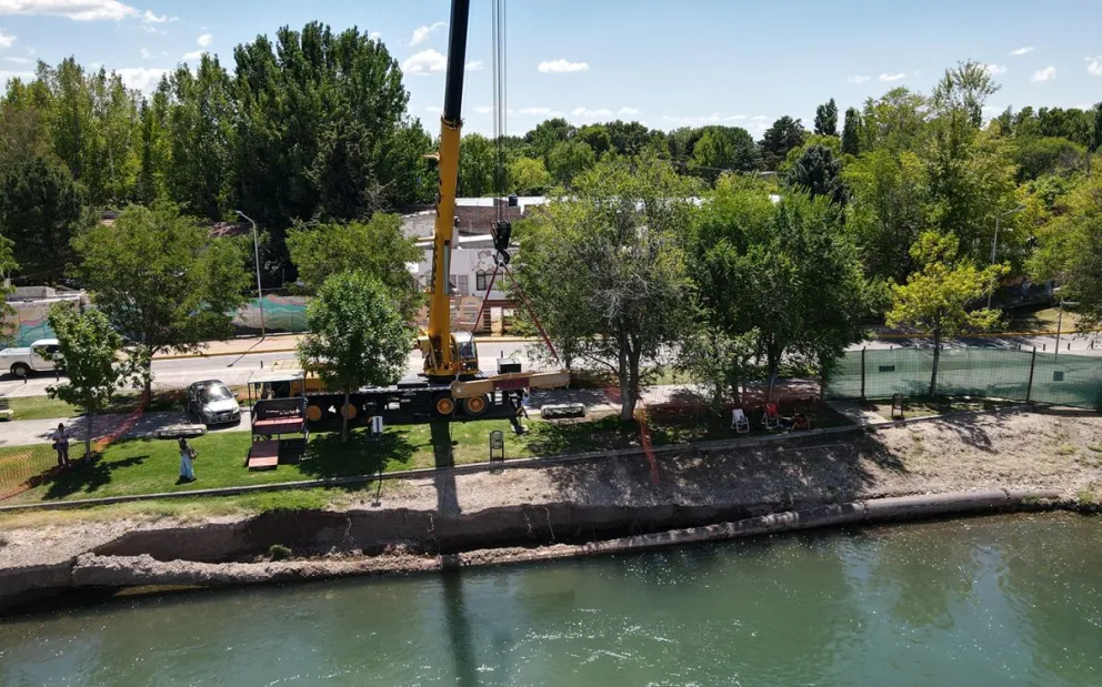 Ejecutan obras de mitigación en la zona del balneario Río Grande, para reconstituir el terreno que sostiene la cañería de impulsión del EPAS. Es para garantizar el suministro de agua potable a 80.000 vecinos de Neuquén Capital.