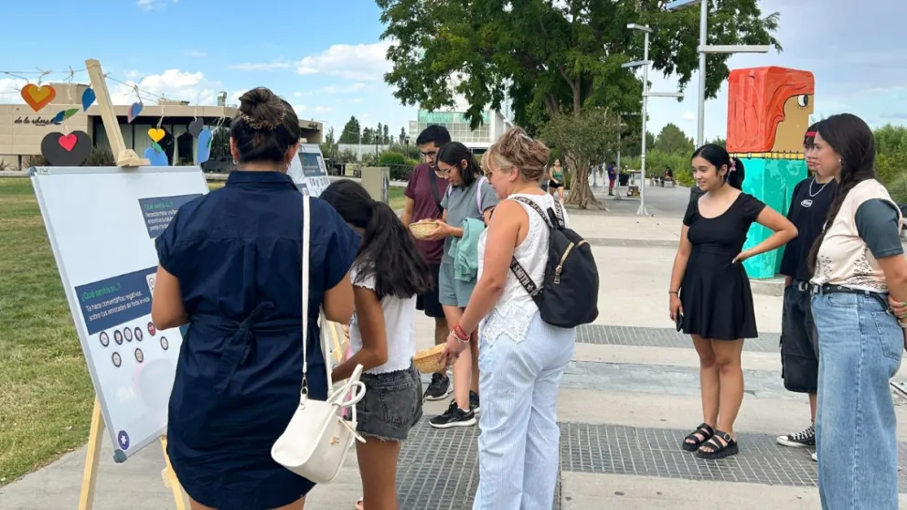 Las actividades estuvieron espacialmente enfocadas a los jóvenes que decidieron pasar la tarde del viernes, en el Paseo de la Costa de la ciudad de Neuquén, interactuando a través de preguntas, cartelería y folletos que les planteaban distintas situaciones para abordar temáticas como celos, control y violencia, pero fundamentalmente resaltando rasgos positivos de los vínculos, como el diálogo abierto, la confianza y la responsabilidad afectiva.