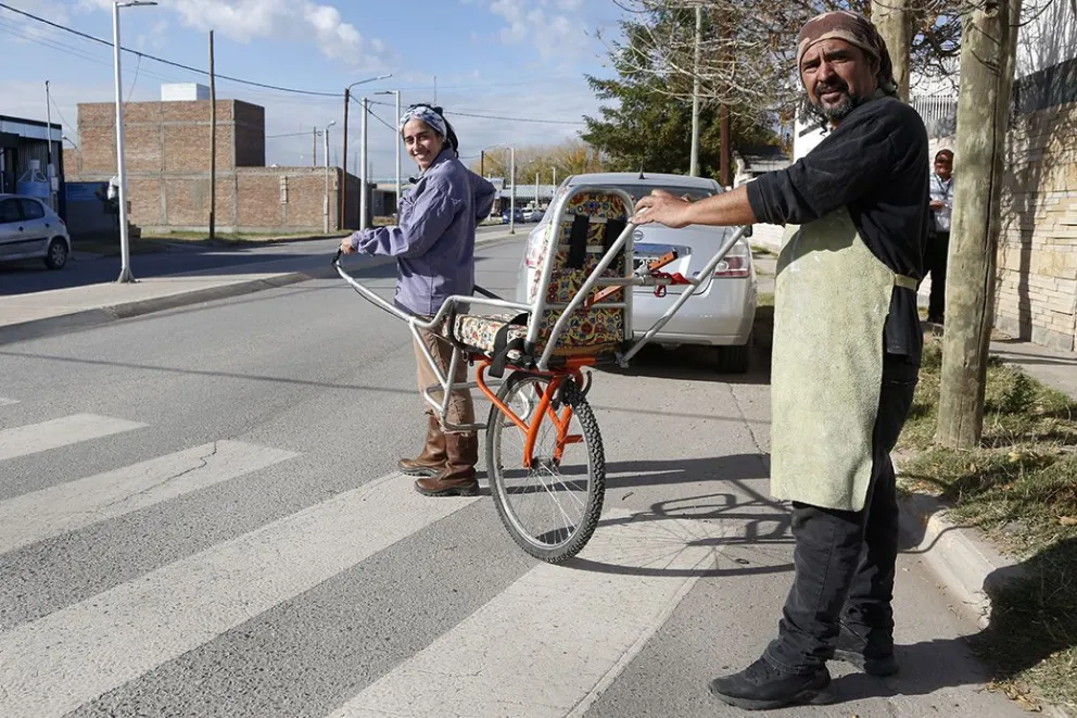 Fue entonces cuando su mirada pedagógica se cruzó con un nuevo oficio: la herrería. Mientras cursaba en el Centro de Formación Profesional Nº 14, construyó un monociclo con una silla adaptada para senderismo. “¿Por qué no construirlo si yo también estoy aprendiendo?”, se preguntó. Así nació un proyecto con corazón y materiales reciclados: “Reciclamos hierros, metales, bicicletas que me donaban, mesas de escuela rotas”, enumeró.  Con ayuda de su profesor Nelson Moraga y la colaboración de la comunidad, adaptó y fabricó un vehículo único, inspirado en otros modelos de monociclos como la Champa Bike o el modelo europeo Joëlette, pero hecho con manos neuquinas.