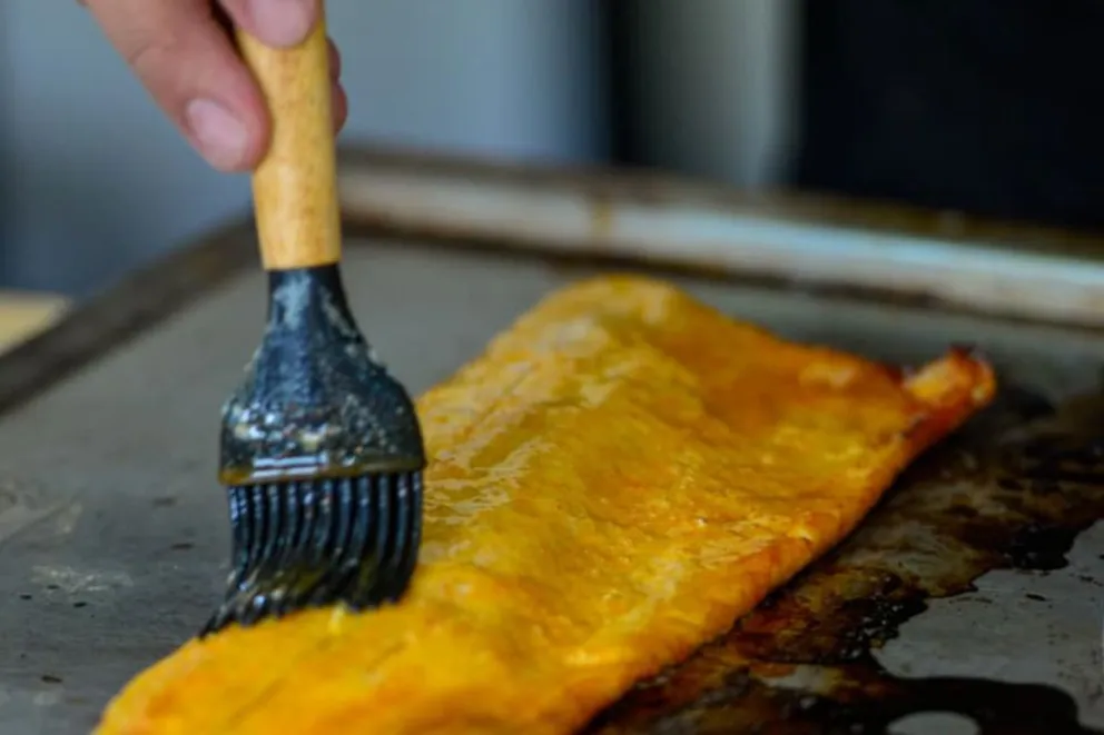 El plato se arma con una base de cremoso de zapallo, encima la trucha gratinada y, como cierre, el mote. Es una propuesta casera y honesta, pensada para acompañar el paisaje y el ritmo del norte neuquino. Un plato que habla de cercanía, identidad y respeto: por el producto, por quien lo produce y por el territorio del que nace.